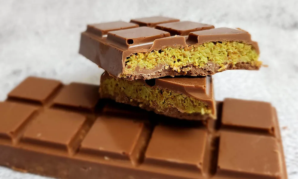 Geniet van je zelfgemaakte Dubai chocoladereep